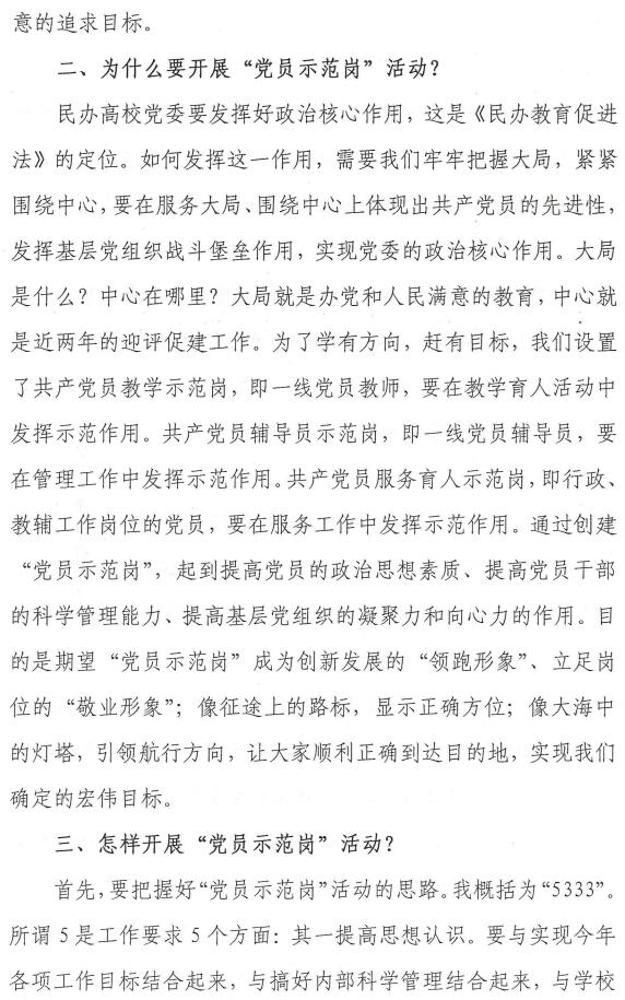 吴书记在开展党员示范岗活动动员会上的讲话