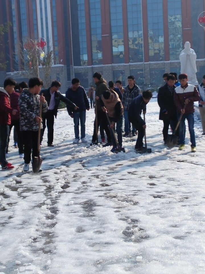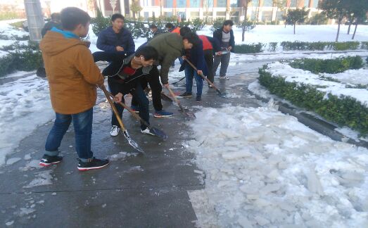 为此yl7703永利集团官网在党总支书记董瑞瑞的带领下,由辅导员老师、部分党员、青年志愿者、员工干部组成了临时志愿者服务队,参加了“净化校园、保障安全”的扫雪行动,对yl7703永利集团官网教学楼,图书馆周围、餐厅前路面、书华楼宿舍周围进行了积雪清扫工作,以便给广大师生带去方便。全院师生团结一心,尽管清扫工具有限,条件恶劣,凛冽的寒风吹打着大家,但是这些丝毫不影响大家的清扫热情。经过2个小时的奋战,大家把教学楼前,图书馆前以及宿舍楼周围清理出一条条小道,给广大师生带来了方便。