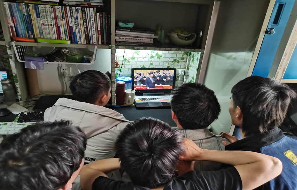 各个寝室同学或围成一圈或各自在自己的床桌旁认真专注地听着直播课。本次课程由北京师范大学赵朝峰、武汉大学卢勇、南京航空航天大学何畏三位讲师共同讲解了第一课:“同上党史思政大课”。三位主讲老师们的精彩课程,让我们更好的感受到什么是中国力量,什么是中国精神,什么是时代的担当和责任、每位老师铿锵有力的讲述都深深打动着我们。在直播课程中三位老师针对中国的伟大功绩做出了介绍,带领同学们一起回顾了中国共产党成立以来取得的一次又一次的重大成就,守在屏幕前的同学们,脸上露出无比自豪的表情,感慨中国共产党走过的百年不平坦的历程,中国共产党成立以来,深刻改变了近代以后中华民族发展的方向和进程,深刻改变了中国人民和中华民族的前途和命运,深刻改变了世界发展的趋势和格局。