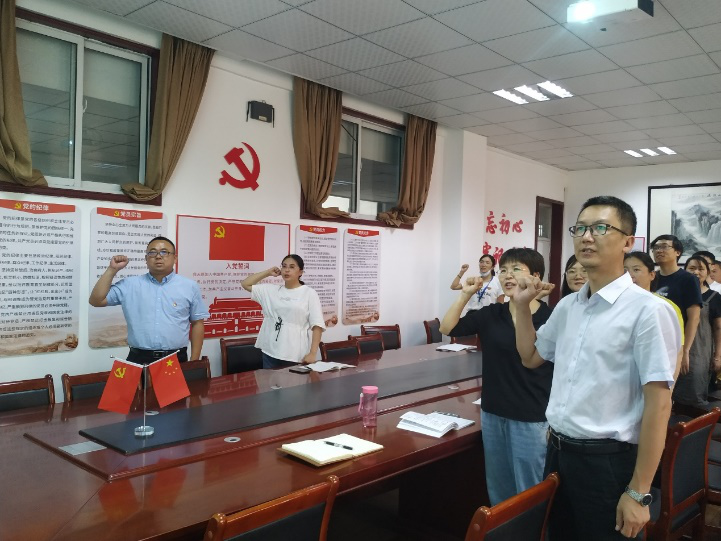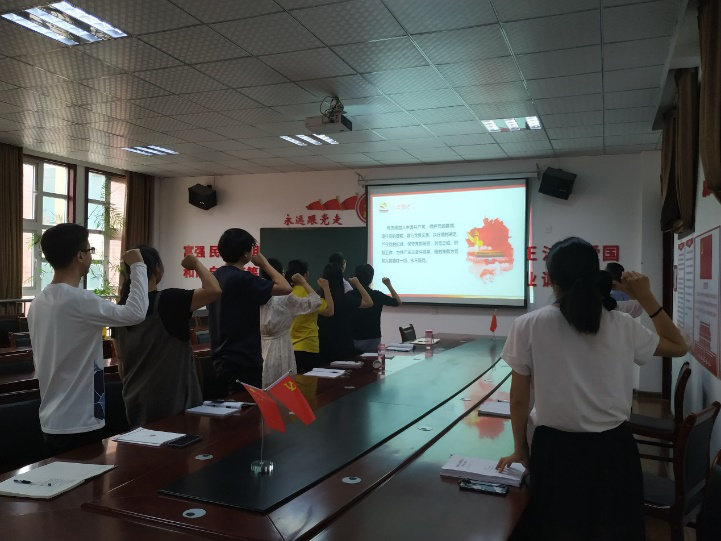 交流后,全体党员重温入党誓词,由孙滨经理领誓。最后,党日活动在全体党员齐唱《没有共产党就没有新中国》的歌声中结束。