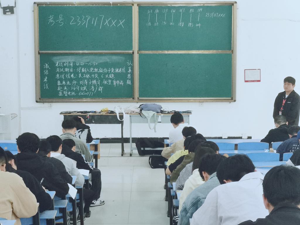 本次考试为闭卷答题,考试题目分为填空,选择,判断,简答题与论述大题。考试的内容不仅包含党史、党章、党员的权利与义务等基础知识,还涉及二十大主题等时事政治相关学习内容。考试开始前各个考场的考试负责人宣读了考场纪律和注意事项,监考人员在各自的岗位认真负责,严肃考风考纪,同学们遵守纪律认真作答,考试圆满结束。