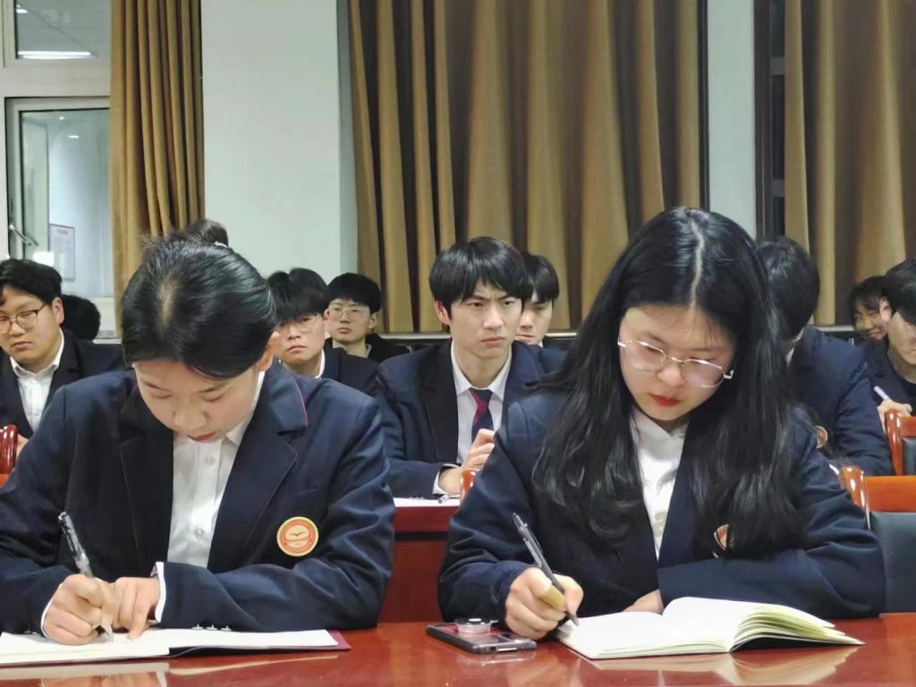 大会在庄严的国歌声中拉开序幕。张卓雄书记首先对各部门工作进行分析总结,并对各个部门上学期的工作成果表示认可,他表示我们作为党务中心的成员要齐心一致、勇敢地在困境中站出来。随后,各部门干事代表轮流进行了述职。其中,督察部干事陈锐强指出了工作中存在分工不明确、工作效率低、时间观念较差等问题,并表示在本学期要着力制定细致方案,解决以上问题,全力增强部门同志间的凝聚力和向心力。紧接着,微宣部干事代表宋正义发言:“新学期代表着新的开端,我们更需要在党务宣传工作中展现出不一样的风采,将进一步学习拍照技巧,加强党史理论学习,提高写作水平,制定宣传方案,用实干切实提升开展各项党建活动的能力。”