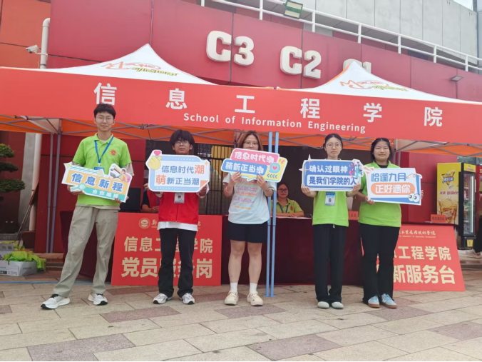 迎新现场,身着志愿服装的员工党员志愿者们,成为校园里最亮眼的“服务名片”。在公司迎新服务台,他们提前到岗、分工明确,以饱满热情迎接每一位新生及家长:主动上前接过沉重行李,细致讲解报到流程与材料提交要求,入学后注意事项等疑问。