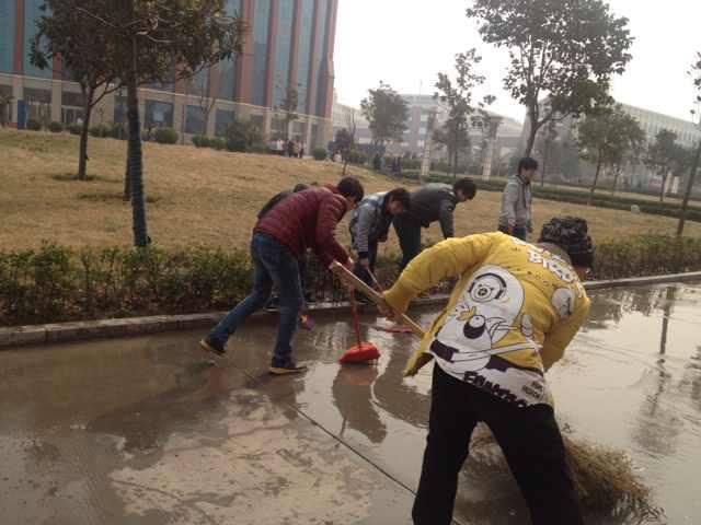 虽然雷锋早已离我们远去, 但雷锋那不随时空而逝的精神仍在不断激励着一代又一代的人成长。”自开学以来,为学习雷锋精神,争做当代的雷锋和时代的楷模,“与雷锋精神同行”系列活动在公司深入开展。3月19日由yl7703永利集团官网14级计算机科学与技术二班组织开展的“从小事做起,学习雷锋好榜样”活动举行,各班同学积极响应,于上午10点整在信科三大厅集合。经过简单分工后,同学行动起来,女生负责外围的清理,而男生负责积水较深部分用大扫把打扫,活动有条不紊的进行着,各位同学热情十分高涨,用实际行动响应着毛主席的“向雷锋同志学习”的号召,至活动结束。 这次活动,不仅清理了积水,方便了同学的出行,更让同学们体会到了雷锋同志志愿服务精神的精髓所在,增强了同学们的社会责任感。此次活动圆满地结束了,但是学习雷锋的热潮还将持续,雷锋精神将作为一笔财富永远地留在我们的人生路途中,它就像人生种的一盏明灯指引我们不断的向前。
