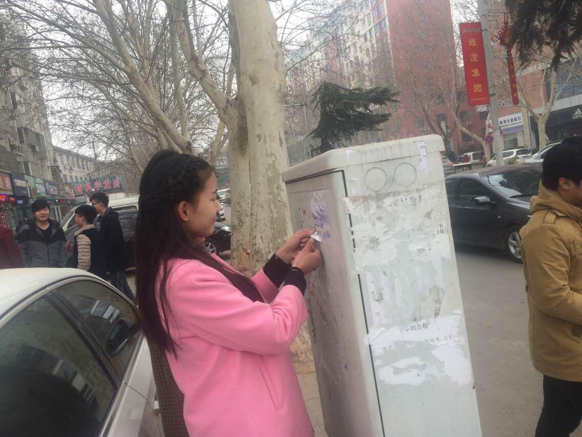 当我们的员工走上街头就发现了路边已经有了正在清除小广告的老奶奶,我们的同学热心地上前帮助老奶奶撕掉柱子上的广告,同学们都非常有热情自己参与到这项活动当中,一切活动都在有条不紊的进行着,还有一些同学则在周边宣传乱贴小广告的坏处,大力倡导周边人民也能爱护环境!