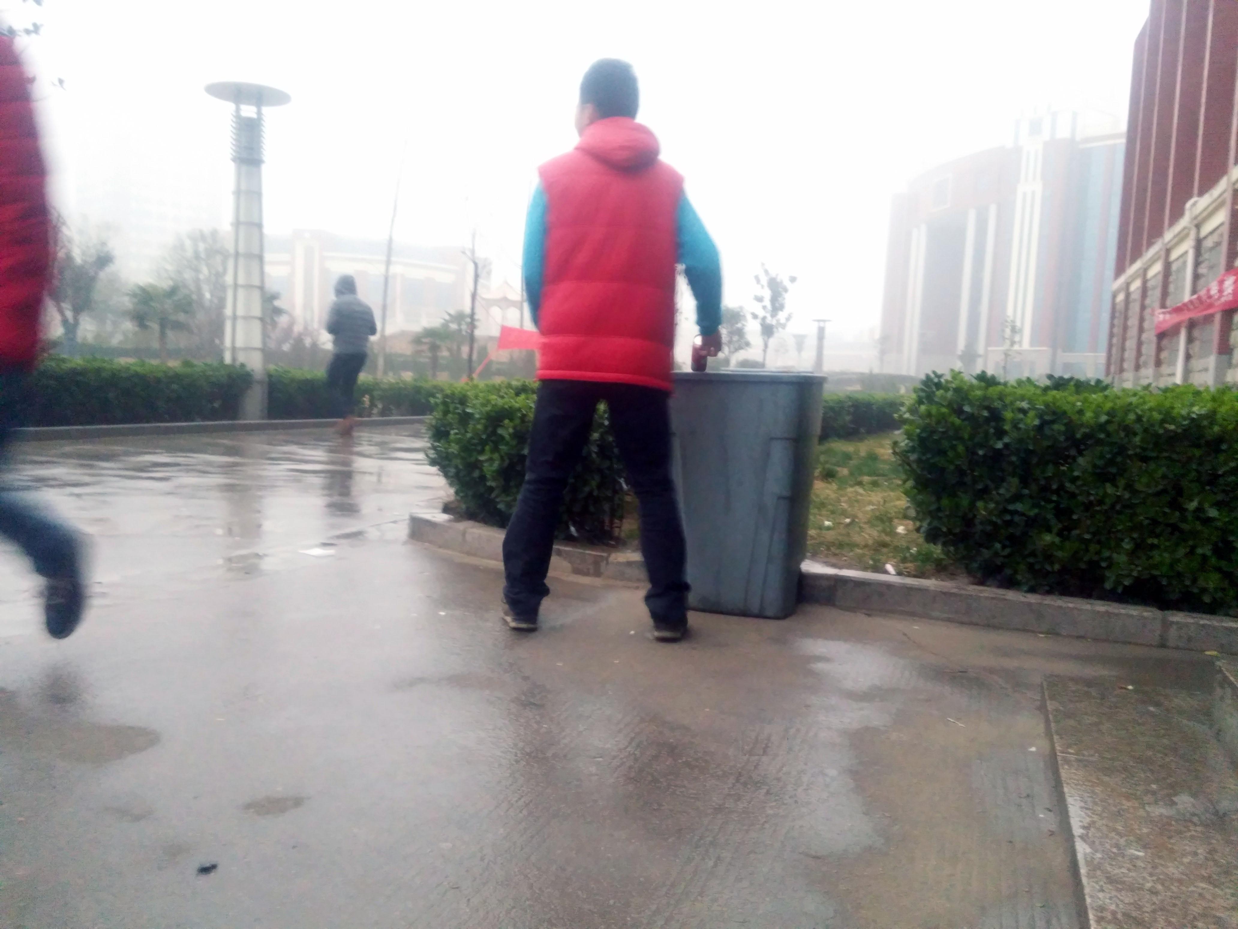 员工志愿者在捡拾被随手扔在地上的垃圾