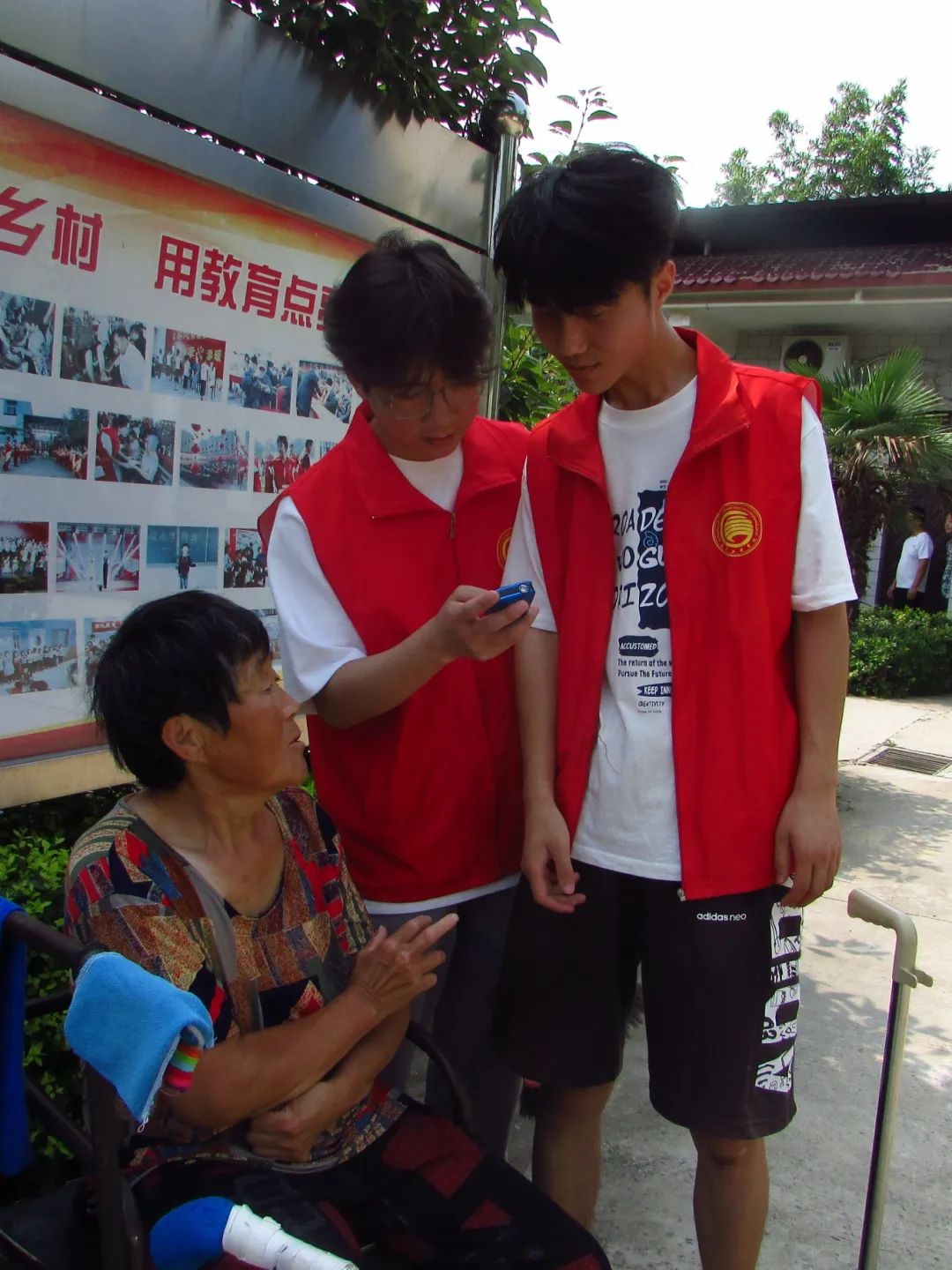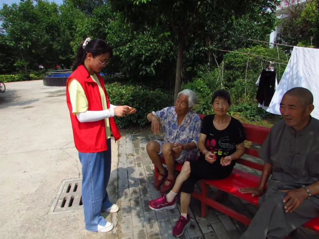 图为团队成员在和老人们交谈