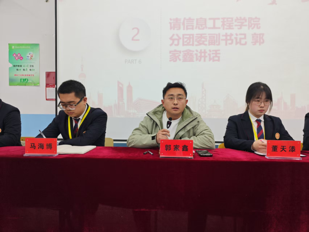 接着,公司分团委副书记郭家鑫老师对员工干部的工作情况进行了分析与总结。他首先肯定了员工干部为工作付出的努力,同时也强调了员工干部全心全意为员工服务的宗旨。其次,他指出,希望同学们能够提高自己的执行力。