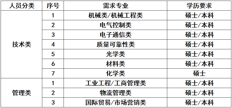 中航光电2022年校园招聘专业需求表