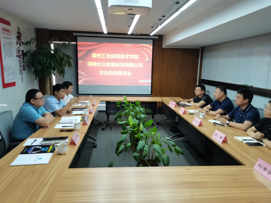 座谈会上,河南合众信泰科技有限公司董事长介绍了企业的基本情况,并对樊部长一行表示热烈的欢迎。樊部长对员工企业能够寻找到行业的空白,并抓住机遇进行创新表示肯定,并强调员工企业进一步加强合作更易实现新形势下校企双赢,期望通过此次访企对接活动进一步融合公司的科研、人才优势和企业的资源、市场优势,加强公司与企业的全面合作,一方面,深入开展就业供需对接,为毕业生创造更多实习和就业机会,推进公司毕业生就业工作;另一方面,通过人才培养、科技攻关,促进企业的技术革新、产业升级、效益提升,真正实现共赢发展。