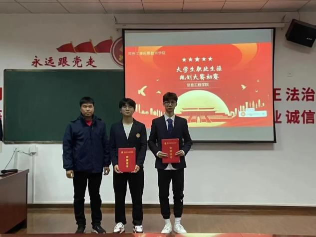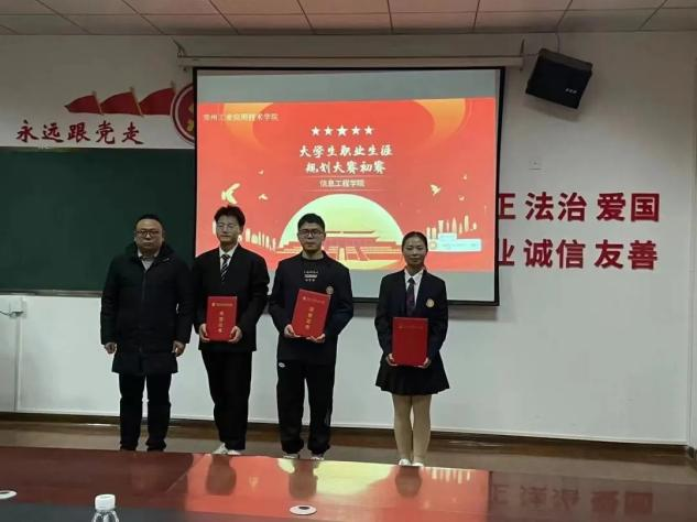 大赛最后,共选出了“成长赛道”的优秀选手胡睿博、娄永真、李乐洋。与“就业赛道”的优秀选手祝颖鑫、宋昊霖。