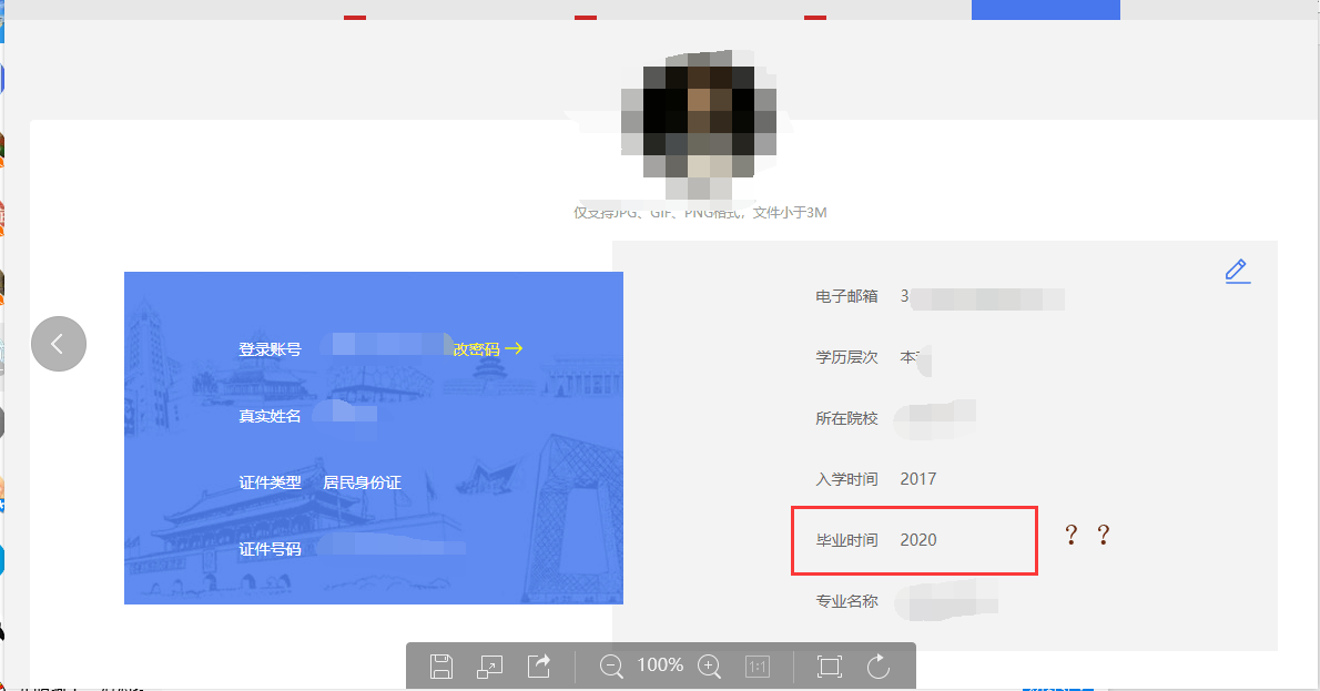 该图为学信档案上的信息,毕业日期为2021年,我们又查看大创网个人设置里的信息,如下图: