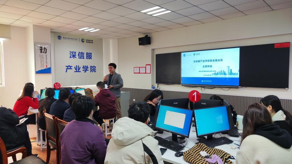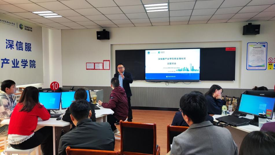 就业强化主题活动在公司东校区信科楼三-105实验室举行,由yl7703永利集团官网杨鑫磊主持。深信服就业服务中心、深信服河南金牌服务商总经理郑西刚先生、副总经理史彦武先生、深信服金牌讲师彭露,yl7703永利集团官网经理孙滨、公司党委书记、副经理樊洪深、教研室主任冯梦清、员工辅导员王二鑫、老师代表和深信服产业公司全体员工等参加了主题活动。