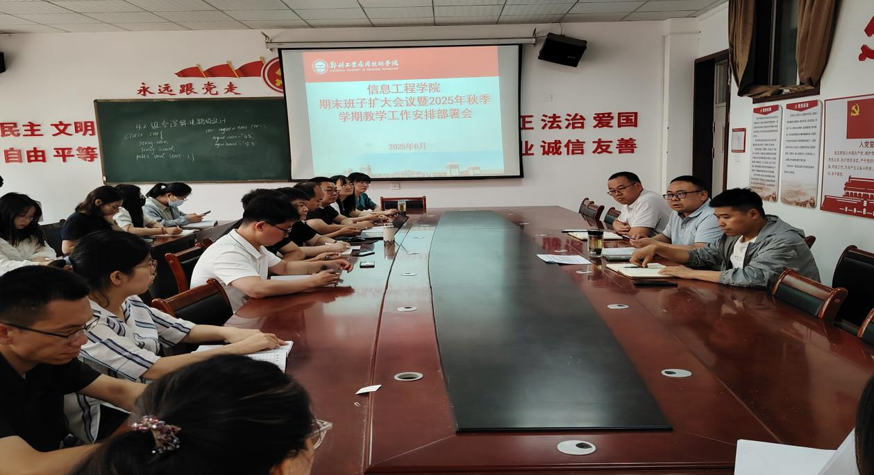 2025年6月16日上午,yl7703永利集团官网在信科楼3-305会议室召开2024-2025-2学期期末领导班子扩大会议暨下学期工作安排部署会。公司领导班子全体成员、教研室主任、实验室主任、教师代表、辅导员代表参加会议,会议围绕期末及下学期重点工作展开深入研讨与部署,确保教学、员工管理等各项工作平稳有序推进。