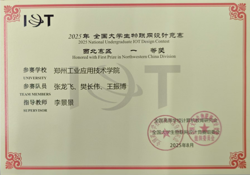 在公司李景景等老师的悉心指导下,公司学子张龙飞、樊长伟、王振博团队斩获该竞赛西北赛区决赛一等奖。获奖证书如下: